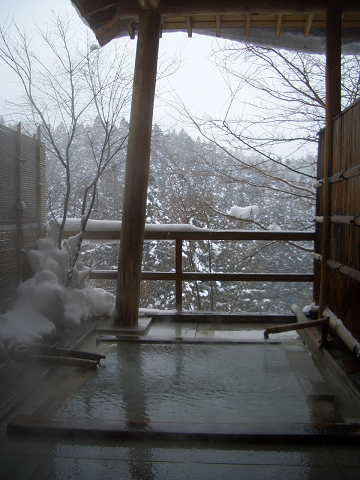 雪一面の山々に囲まれた静かな秘湯にごり湯の宿です。